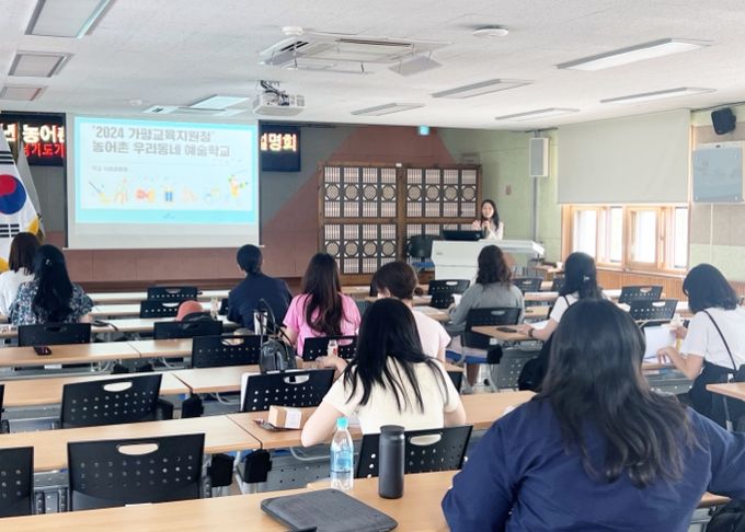 (중부시사신문) 가평교육지원청은 2024년 농어촌 우리동네 예술학교 사업 운영을 위해 5월30일 “더한교육[전문기관]”과 함께 학교대상으로 사업설명회를 개최했다. 농어촌 학교 학생들의 문화예술교육 기회 확대를 위해 전문기관과 연계하여 전통예술, 연극, 음악, 무용 등을 정규수업, 방학 중 캠프 등으로 참여할 수 있는 사업이다.