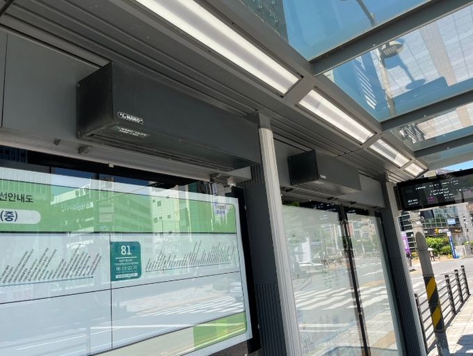 에어송풍기란 에어컨과는 달리 작동스위치를 통해 전원을 키면 약 3분간 바람이 나오는 버스정류소 내 편의시설물이다. 지난 5월 27일부터 에어송풍기가 설치된 버스정류소(110개소)에 대해 에어송풍기 작동 일제점검을 실시했으며, 6월 1일부터 에어송풍기 전면 운행실시될 예정이다.