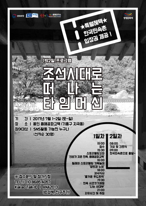 일정은 24~25일은 대학생 대상, 7월 1~2일은 일반인 대상으로 진행된다. 참가비는 무료이며 가족참가자에게는 민속촌 입장권을 나눠준다.