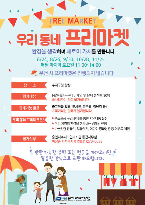 한편, “우리 동네 프리마켓”은 매월 마지막 토요일에 수지구청 광장에서 지역주민과 소통의 장을 마련하고자 진행되며 11월까지 진행할 예정이라고 밝혔다(7월 혹서기 제외). 담당자인 이상훈 사회복지사는 “지난 2015년부터 지속적으로 진행된 프리마켓은 다양한 지역주민들이 참여하며 나눔의 가치를 실천하였다.