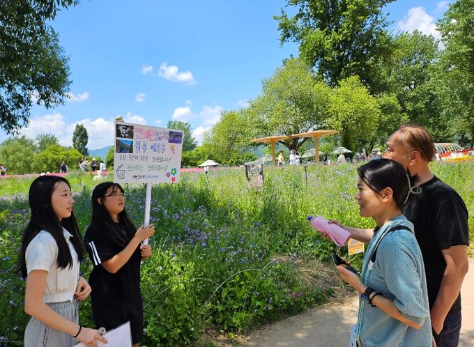 지난 5월 한 달간 꽃 페스타에 식재되는 꽃을 미리 확인하고 알아본 청소년들은 자신이 해설하고자 하는 꽃을 선택해 꽃말, 원산지, 다양한 특징들을 조사하고 원고를 작성했다. 또한, 자신들이 꽃 해설사임을 알리기 위해 피켓을 직접 제작해 토요일인 1일 봉사활동에 나섰다.