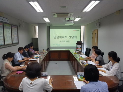 이날 간담회에는 아파트 관리소장과 입주민대표, 보건소 관계자 등 10명이 참석한 가운데 보건소 금연프로그램 지원과 아파트별 자체적인 금연 관리 방안 등을 논의했다.