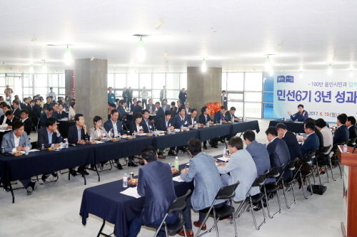 용인시는 19일 오전 처인구 삼가동 시민체육공원 조성 공사현장에서 5급 이상 공무원과 협업기관장 등 150명이 참석한 가운데 ‘민선6기 3년 성과와 과제 보고회’를 개최했다고 밝혔다.