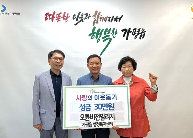 (중부시사신문) 가평읍에 위치한 오륜비전빌리지는 지난 3일 가평읍 행정복지센터를 방문해 성금 30만원을 전달했다.
