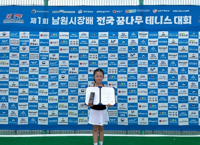 (중부시사신문) 제1회 남원시장배 전국꿈나무 테니스대회에서 가평 G-스포츠클럽 전이제(여, 2학년)선수가 여자 새싹부 개인단식 경기에서 준우승을 하는 쾌거를 이뤘다.