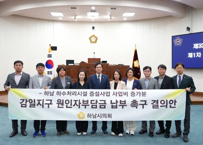 하남시의회는 14일 제330회 제1차 정례회 제2차 본회의를 열고 ‘하남 하수처리시설 증설사업 사업비 증가분 감일지구 원인자부담금 납부 촉구 결의안’을 만장일치로 채택했다고 밝혔다.