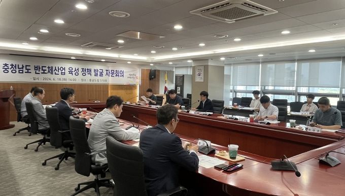 도는 18일 도청 중회의실에서 반도체특성화 대학으로 지정된 한기대와 호서대를 비롯한 충남테크노파크, 충남연구원, 한국생산기술연구원, 기업 관계자 등 10여 명이 참석한 가운데, ‘반도체 정책 발굴 자문회의’를 개최했다.