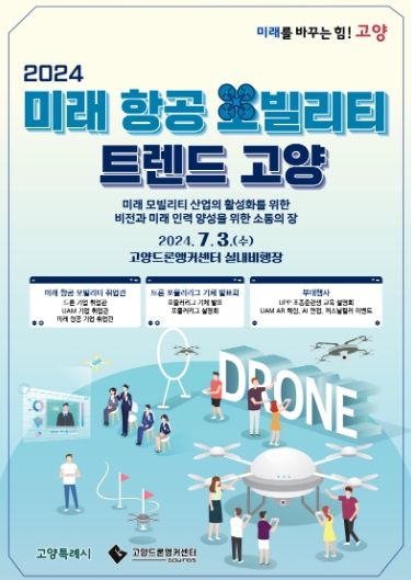 (중부시사신문) 고양특례시는 미래 모빌리티 산업 활성화를 위해‘2024 미래 항공 모빌리티 트렌드 고양’행사를 오는 7월 3일 고양드론앵커센터 실내비행장에서 개최한다고 밝혔다.