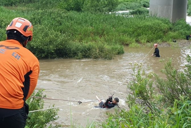 (중부시사신문) 6월 30일 05시 52분 경 가평군 청평면 청평리 조종천에서 자전거를 탄 사람이 불어난 물에 고립되어 있다는 신고를 받고 출동한 가평소방서 구조대원에 의해 안전하게 구조됐다.