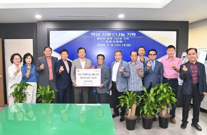 이날 기탁식에는 이현재 하남시장을 비롯하여 이웃사랑회 남명현 회장을 비롯한 회원 10여명 등이 참석하여 자리를 빛냈다.