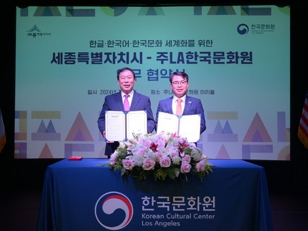 정상원 원장은 “세종시가 한글문화도시 선정과 한글문화단지 조성을 통해 한글과 한국어, 한국문화를 알리고 보급하는 데 중추적 역할을 해 나가리라 기대한다”며 “LA한국문화원도 이번 협약을 한류의 지속가능성을 높이는 초석으로 삼아 나가겠다”고 화답했다.