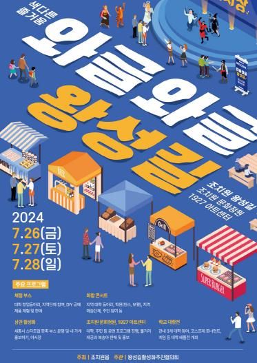 (중부시사신문) 세종특별자치시 조치원읍이 오는 26일부터 28일 조치원 복숭아축제 기간에 맞춰 조치원 왕성길(새내12길 일원)과 문화정원, 1927아트센터 등에서 ‘와글와글 왕성길 축제’를 연다.