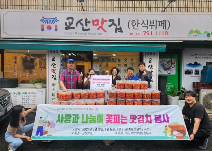 독도사랑하남운동본부는 경기도자원봉사센터의 지원을 통해 작년, 밑반찬을 시작으로 올해도 5월부터 7월까지 세 달에 걸쳐 50박스씩 총 150박스의 직접 담근 김장김치를 지난겨울에 담근 김장김치가 부족하게 되는 여름철, 사각지대에 놓인 취약계층 노인들의 영양 상태를 개선하고자 전달했었다.