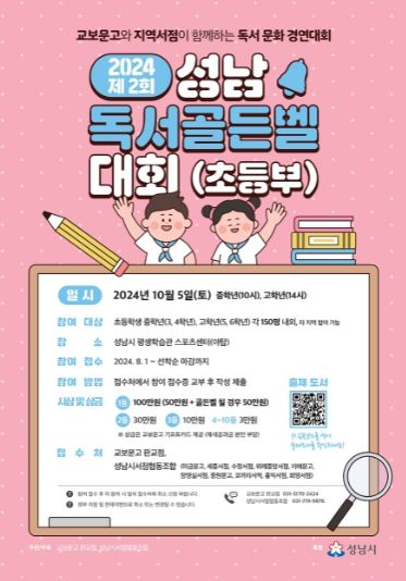 대회에 참가하려는 초등 3~6년생은 교보문고 판교점, 미금문고, 세종서점, 수정서점 등 11곳의 지역 내 서점 접수처를 방문해 선착순으로 신청하면 된다.