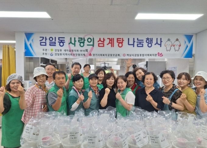 (중부시사신문) 하남시 감일동은 지난 12일 새마을협의회·부녀회가 주관하고 지역사회보장협의체, 감일종합사회복지관의 후원으로 감일동 취약계층 어르신 40가구를 대상으로 “사랑의 삼계탕 나눔 행사”를 실시했다.