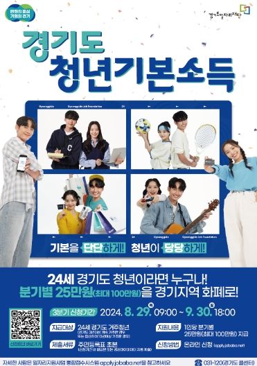 9월 30일까지 경기도 일자리플랫폼 ‘잡아바’ 회원가입 후 온라인 또는 모바일로 신청 가능하며, 기존 수령자 중 자동신청에 동의한 대상자는 별도 신청 없이 청년기본소득을 받을 수 있다.