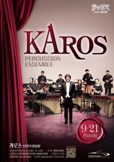 (중부시사신문) 9월 21일 토요일 15시 양평생활문화센터 2층 씨어터양평에서는, 양평문화재단의 '별빛물빛 콘서트 in 양평' 9월 공연인 “카로스 타악기 앙상블”의 무대가 준비되어 있다.