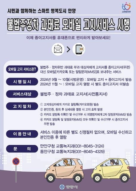(중부시사신문) 안양시는 내달 2일부터 불법주정차 과태료 모바일 고지 서비스를 시작한다고 30일 밝혔다.