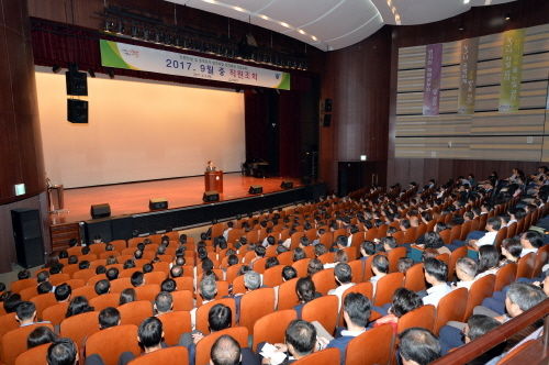 이재명 성남시장은 5일 오전 성남시청 온누리실에서 열린 9월 월례조회에 참석했다.