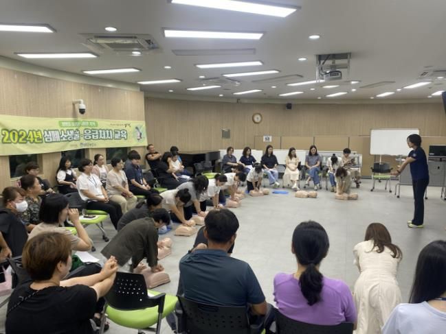 전문강사를 초빙한 이번 교육에는 자동심장충격기 관리책임자 교육, 심정지 환자의 심폐소생술 요령, 자동심장충격기 사용법 및 관리, 생활 속 각종 사고 시 응급처치 등 이론과 실습이 병행됐다. 특히 응급의료포털(E-gen)에서 자동심장충격기 설치 위치, 이용시간 검색 방법 등도 안내됐다.