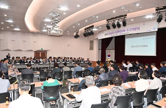 (중부시사신문) 하남시가 2일 시청 본관 대회의실에서 ‘제9회 시민참여 주간회의’를 갖고 시정현안을 시민과 공유하는 시간을 가졌다.
