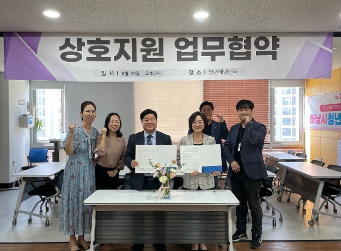 이번 업무협약은 양 기관이 유기적인 협력체계를 구축하여 지역사회 내 청년의 일 경험 및 취업 기회 확대를 위한 하남청년도전지원사업을 진행하여 청년들에게 다양한 직무와 진로 탐색의 기회를 제공하고, 지원체계를 함께 구축하여 인적 ·물적 자원의 지속적인 교류와 지원에 대한 내용을 담고 있다.