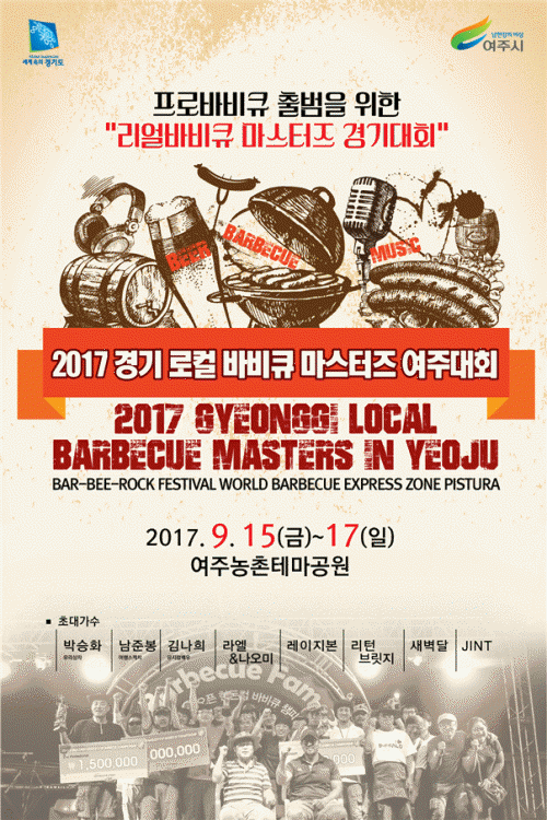 지역 축산물과 쿠킹(Cooking), 레저콘텐츠가 융합한 축제 ‘2017 경기도 로컬 축산물 바비큐 마스터즈 여주 대회’가 오는 15일부터 17일까지 3일간 여주시 농촌테마공원 내 잔디광장 일원에서 열린다.