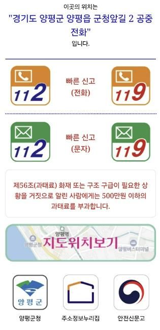 또한, 이번에 새로 도입한 주소판은 큐알(QR)코드가 기입되어 있어 스마트폰 카메라로 코드를 스캔하면, 현 위치 정보가 담긴 112 및 119 긴급구조요청 문자가 자동 작성되어 신속하고 정확하게 신고할 수 있다.