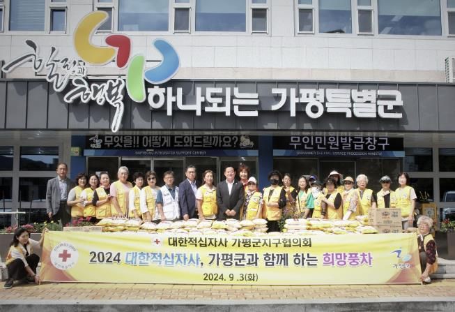 (중부시사신문) 대한적십자봉사회 가평군지구협의회는 어려운 이웃에게 추석명절 온정을 전하기 위해 3일 가평군에 백미 186포대를 기탁했다.