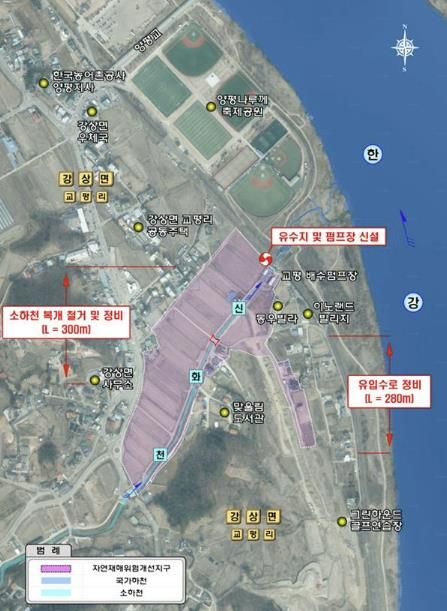선정된 신규사업은 1998년에 처음 설치되어 운영(분당 293㎥)중인 교평지구 배수펌프장을 철거하고 인근에 분당 1,680㎥의 물을 배제할 수 있는 펌프시설과 펌프시설로 유입되는 강상면 교평리 소재 신화천(소하천) 약500m를 재정비(확장)하는 사업이다.