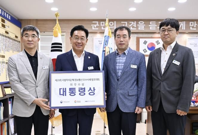 군은 지난 5일과 6일 1박 2일간 경남 거제시 소노캄에서 개최된 제29회 지방자치단체 정보통신 우수사례 발표대회에서 대통령상을 수상했다고 밝혔다.