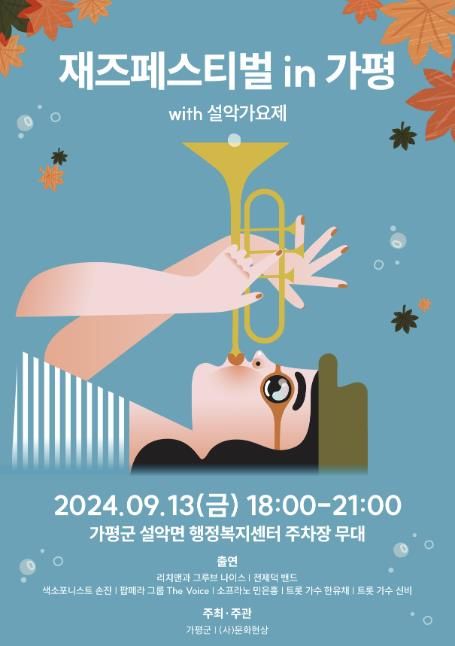 매년 관내 6개 읍·면 중 파트너면(面)을 선정해 ‘미리보는 재즈페스티벌 in 가평’을 진행할 계획이다. 올해는 첫 공연으로 13일 오후 6시부터 설악면 행정복지센터 앞 주차장에서 무대가 꾸려진다.