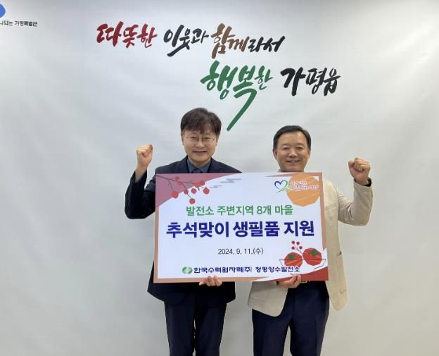 소승영 소장은 “추석을 맞아 가평읍 이웃들에게 물품을 전달하게 되어 기쁘다. 청평양수발전소가 가평읍 복장리에 있는 호명산에 터잡아 있는 만큼, 가평읍의 지역 발전을 위해 힘쓰도록 노력하겠다”고 전했다.