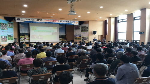 민간방역기구인 용인시공동방역사업단과 협력해 마련된 이날 교육에는 축산농가 400여곳이 참석했다.
