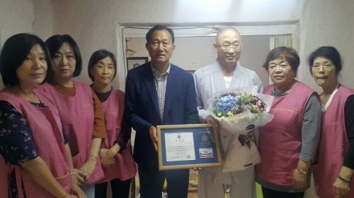 경기도의회는 염동식(바른정당 평택시3) 부의장이 지난 17일 평택시 안중읍 모처에서, 오랜 기간 봉사회원들과 함께 독거노인 삶의 질 개선에 온 힘을 기울여 온 법진스님을 만나 표창장을 전달하였다고 밝혔다.