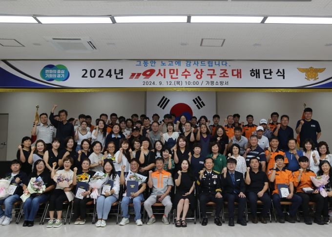 (중부시사신문) 12일 가평소방서는 3층 대회의실에서 약 130명의 참석인원과 함께, 119시민수상구조대 해단식을 가졌다.