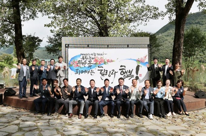 이날 식전 공연에 이어 개막 퍼포먼스로 작가와 주요 내빈이 함께 ‘북한강에 띄운 꽃 피어나는 힐링과 행복’이란 메시지를 담은 캘리그라피 작품을 완성했다. 내빈들의 기념사와 축사가 끝난 후에는 팝페라 그룹 ‘포엣’이 출연해 흥겨운 무대를 장식했다.
