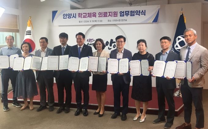 (중부시사신문) 경기도안양과천교육지원청은 9월 19일, 안양시, 평촌서울나우병원, 6개교(중 4교, 고 2교)와 학교체육 의료지원을 위한 업무협약을 체결했다.