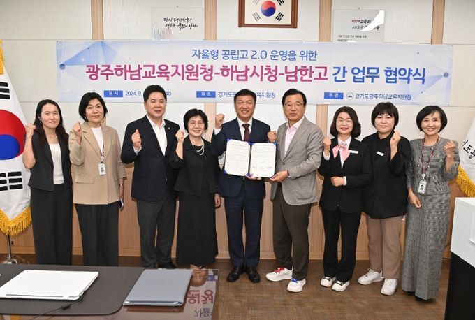 이날 협약에 따라 하남시와 광주하남교육지원청은 남한고가 자율형 공립고로 운영되는데 필요한 행·재정적 지원을 통해 지역 교육 활성화에 앞장설 예정이다.