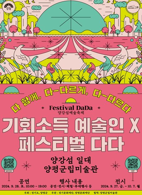 (중부시사신문) 양평문화재단은 9월 28일 오전 10시부터 '기회소득예술인 × 페스티벌 다다'를 양평읍 양강섬(경기도 양평군 양평읍 양근리 572)에서 개최한다.