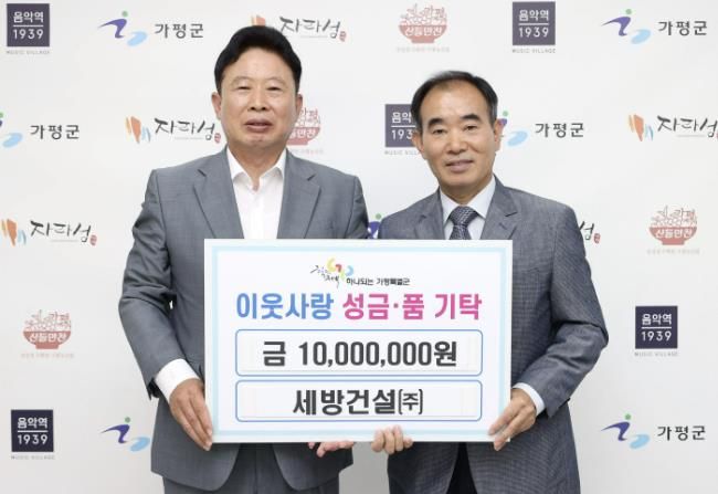 (중부시사신문) 세방건설㈜이 가평군의 어려운 이웃을 위해 1,000만 원의 통 큰 기부를 했다.