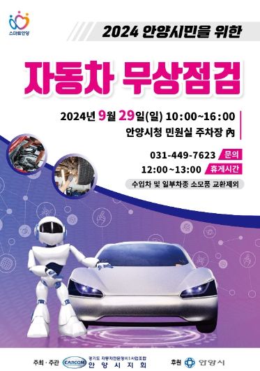 (중부시사신문) 안양시는 시민들의 안전한 차량 운행과 자동차 관리를 돕기 위해 오는 29일 일요일에 ‘자동차 무상 안전점검’을 실시한다고 25일 밝혔다.