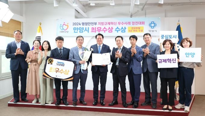 이에 따라 안양시는 행정안전부 지방규제혁신 우수사례 경진대회에서 3년 연속(2022~2024년) 최우수상을 수상하고, 2019년부터 올해까지 6년 연속 수상한 전국 유일의 지자체가 됐다.
