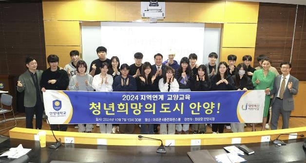 안양학은 안양의 어제와 오늘을 토대로 내일을 조명하는 지역학으로, 지도교수 외에 안양시장, 역사 전문가, 일자리 전문가, 기업인 등의 특강으로 15주 동안 진행되는 교양 수업이다.