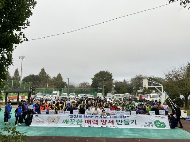 이날 대청소에는 양서면 기관·단체와 양서면사무소 직원 등 150여 명이 참여했다. 양서문화체육공원에 모인 기관·단체 회원들은 각자 장갑과 집게, 쓰레기봉투를 배부받고 할당된 구역의 도로변과 산책로 등을 청소했다.