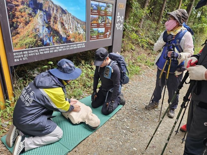 가을철은 등산객이 급증하는 시기로, 특히 날씨 변화와 미끄러운 산길로 인해 안전 사고의 위험이 높아지면서 산악 안전 지킴이 대원들은 등산객들을 대상으로 심폐소생술 교육 및 간이 응급의료소 운영 안전한 산행에 대한 지도 활동을 실시할 계획이며, 긴급 상황 발생시 신속하게 구조할 수 있는 체계를 강화해, 등산객들이 안전하게 가을 산행을 즐길 수 있도록 지원할 계획이다.