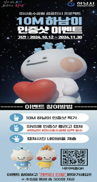 하남시는 10월 12일부터 11월 30일 간 하남이 캐릭터 10M 전시물 인증샷 이벤트를 통해 보다 많은 시민들의 참여도 이끌 계획이다. 또한 버스킹 공연과 미사1동 힐링 음악회 등 다채로운 문화 이벤트와도 협업해 눈으로도 즐겁고 귀로도 즐거운 특별한 즐거움을 시민들에게 제공한다.