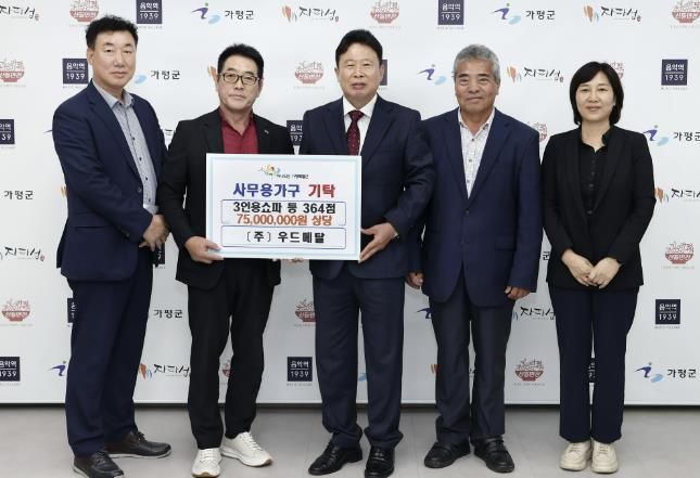 이번 기증품은 7,500만 원 상당으로 남양주시에 소재한 ㈜우드메탈 업체에서 자발적으로 제공한 것이다. 군은 지난 7월부터 물품 기증 의사에 따른 면담과 물품 보관 현장 방문 및 상태 확인, 필요한 수량 확정 등을 통해 쾌적한 사무실 환경 조성과 사업비 절약에 노력을 기울여 왔다.