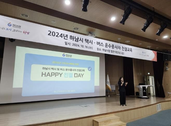 (중부시사신문) 하남시는 지난 16일 시청 별관 2층 대강당에서 관내 택시 및 버스 운수종사자 250여 명을 대상으로 ‘2024년 택시·버스 운수종사자 친절교육’을 실시했다고 밝혔다.