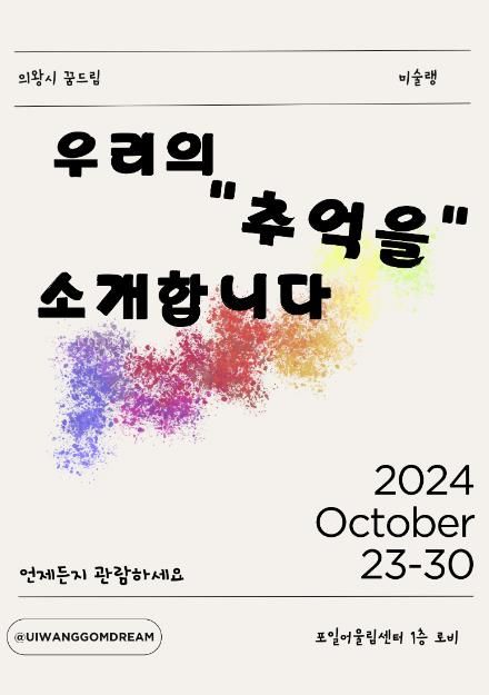 (중부시사신문) 의왕시청소년재단 산하 의왕시학교밖청소년지원센터에서 활동하고 있는 미술 동아리 ‘미술랭’은 오는 23일부터 30일까지 포일어울림센터 1층에서 미술 작품 전시를 개최한다.